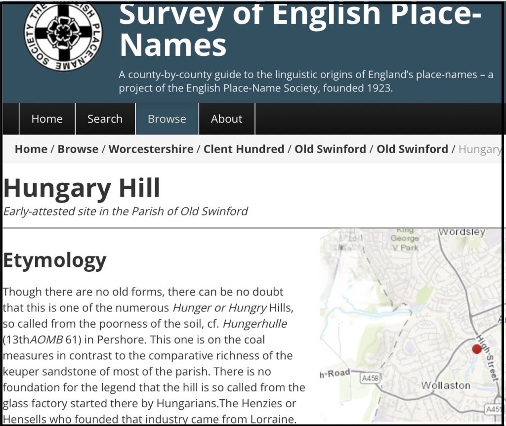 Let’s broaden the scope of ‘Hungry Hill’ place names. The Gazeteer of British place Names lists twenty two places name with ‘Hungry’ in the name.