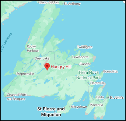 Hungry Hill in British Columbia refers to a prominent hill on Highway 16 famous for its steep grades, challenging driving, and legendary grizzly bear encounters, including the “Hungry Hill Phantom” a huge grizzly bear that preyed on livestock and had to be destroyed by Wildlife Rangers. Locals have many different tales of how this Hungry Hill got its name! Elevation:  820 meters (2,559 ft). The 1012 lbs Hungry Hill Phantom Grizzly Bear, can be seen at Smithers Airport.