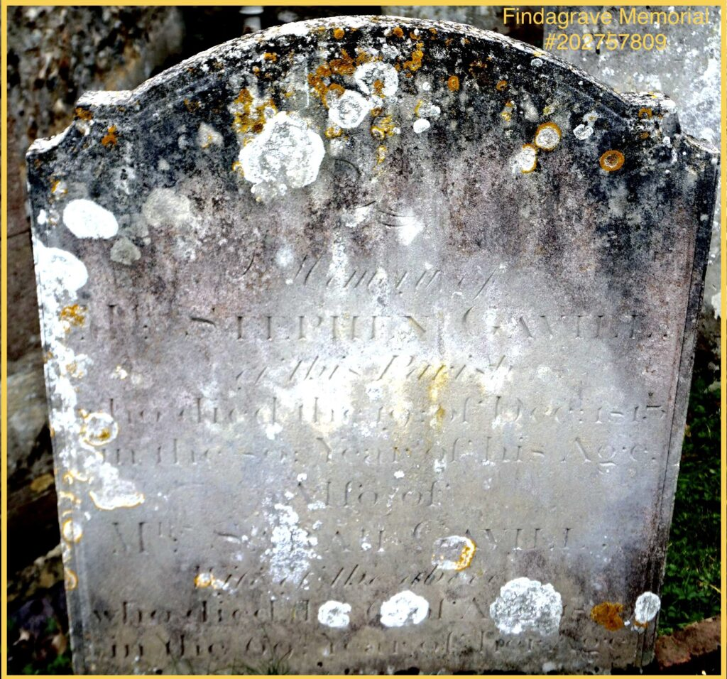 Stephen Gavill, aged 79, died 19 January 1813 and was buried in Ockham Parish Churchyard 24 December 1813